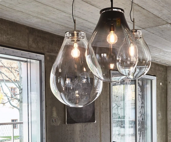 Bomma Tim Pendel Lampe - Large (700). Glaskunst på højt plan fra designerteamet, Olgoj Chorchoj. Michal Fronek og Jan Nemecek. Utrolig smuk pendel udført i glas. Vælg fatningsfarve i enten kobber, nickel eller sort. De smukke lamper kan bla. opleves på NOMA's nye restaurant 108 i københavn.