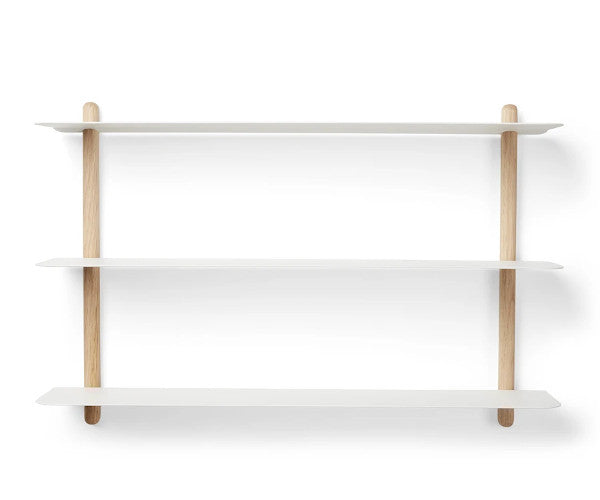 Nivo er en minimalistisk væghylde, der er designet af Böttcher og Kayser for Gejst. Hylden har et rent og fokuseret design uden overflødige elementer, der giver hyldesystemet et svævende og elegant udtryk. Hver lille komponent er gennemtænkt ned til mindste detalje, hvad angår design, form og funktion. Der er ingen synlige skruer, og vangerne er tilført et skråt snit, så hylderne glider lige i, hvilket skaber den flyvende fornemmelse.