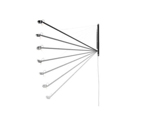 HAY Fifty-Fifty væglampe i sort (soft black). Minimalistisk og karakteristisk væglampe med mange indstilningsmuligheder og et flot lys. Sort pulverlakeret aluminium, med indbygget dæmpbar LED lyskilde.