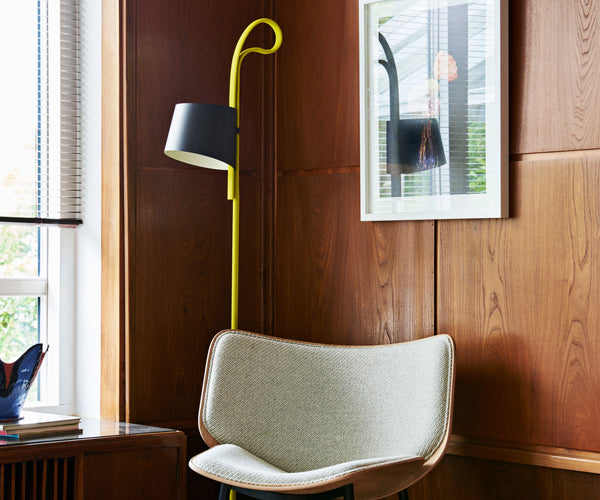 HAY Rope Trick standerlampe med integreret LED og lysdæmper. Designet af Stefan Diez for danske HAY. Minimalistisk lampe med mulighed for højdejustering af lampeskærm.