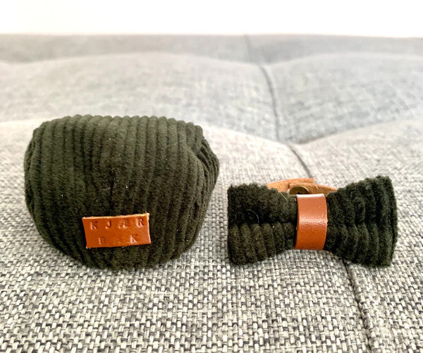 Egon sixpence hat samt butterfly sæt fra Kjær Bak. Håndlavet dansk design, fremstillet af grøn fløjl samt kernelæder. Miniature accessories til Kay Bojesen aben. En god gaveide til andre eller must have til egen abe. Kommer i gaveæske.
