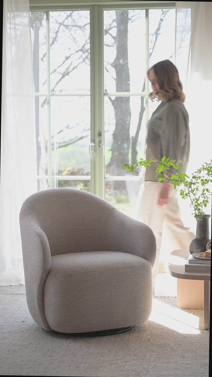 Rowico Home Chapeltown lænestol med drej - Alice lys beige. Chapeltown er en stilfuld loungestol, med bløde, indbydende kurver, dekorative tekstilsømme samt armlæn for ekstra støtte. Chapeltown har 360 graders drejefunktion samt høj siddekomfort og er fuldt betrukket i tekstil Alice lys beige.