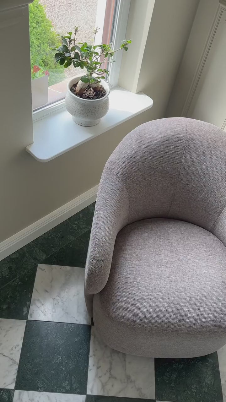 Rowico Home Chapeltown lænestol med drej - Brenda beige. Chapeltown er en stilfuld loungestol, med bløde, indbydende kurver, dekorative tekstilsømme samt armlæn for ekstra støtte. Chapeltown har 360 graders drejefunktion samt høj siddekomfort og er fuldt betrukket i tekstil Brenda beige.
